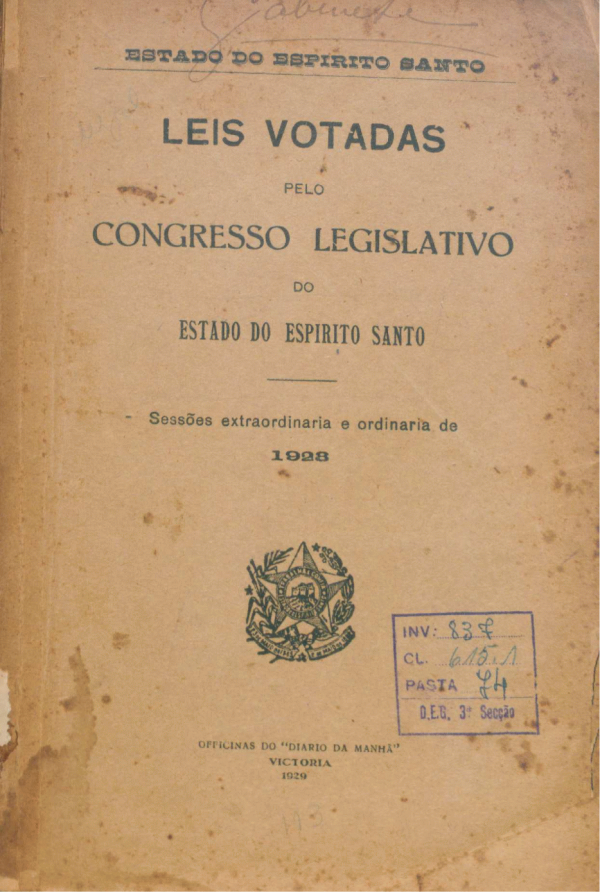 Leis votadas pelo Congresso Legisltivo do Estado Espírito Santo: sessão extraordinaria e ordinaria de 1928