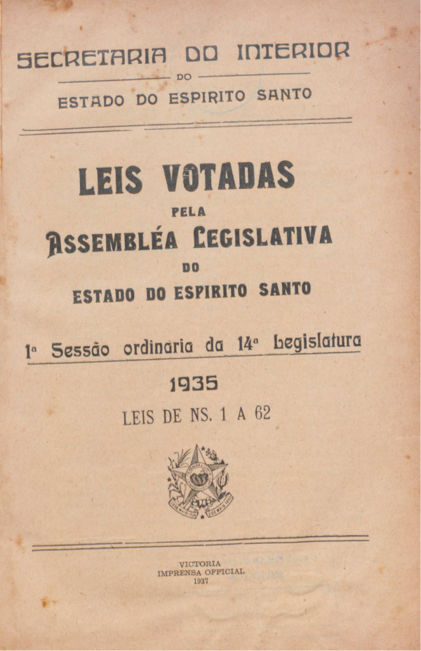 Leis votadas pela Assembleia Legislativa do Estado do Espírito Santo 1ª sessão ordinaria da 14ª legislatura, 1935 Leis de ns. 1 a 62