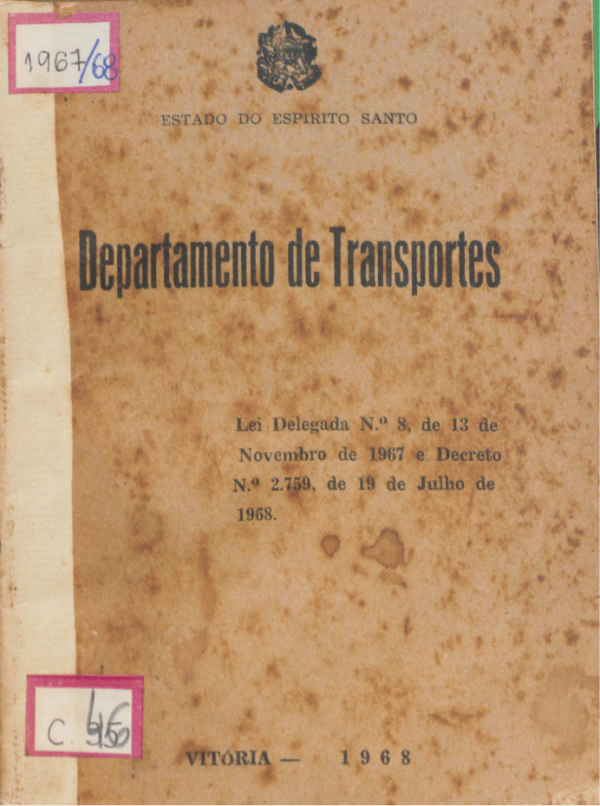Departamento de transportes: Lei delegada nº. 8, de 13 de novembro de 1967 e Decreto nº. 2759, de 19 de julho de 1968