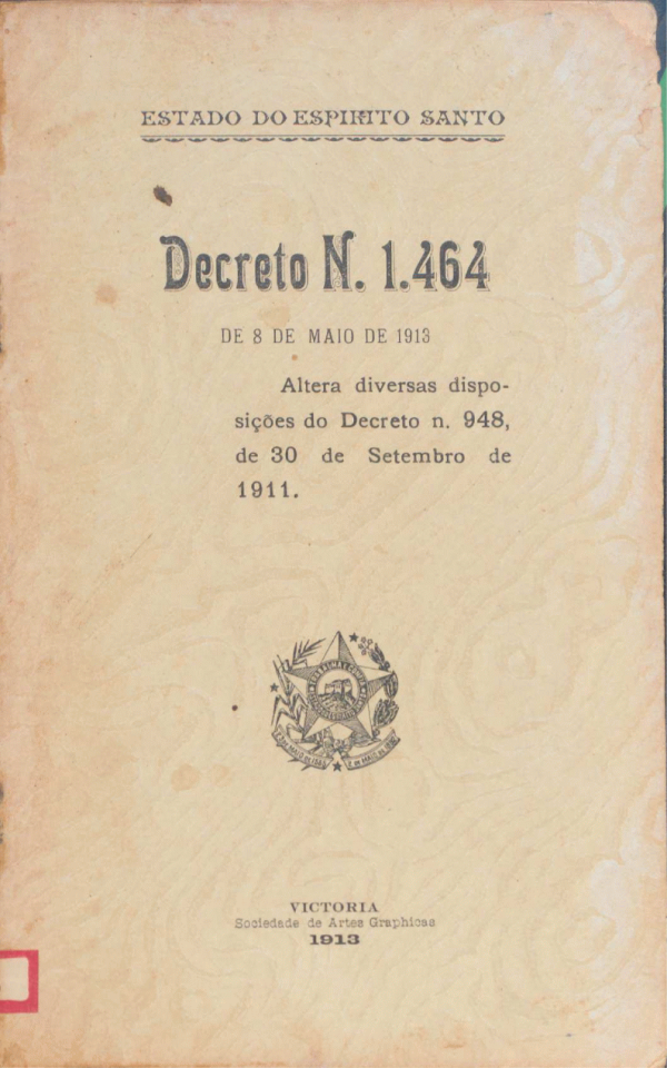 Decreto nº. 1464 de 8 de maio de 1913: altera diversas disposições do decreto nº. 948, de 30 de setembro de 1911