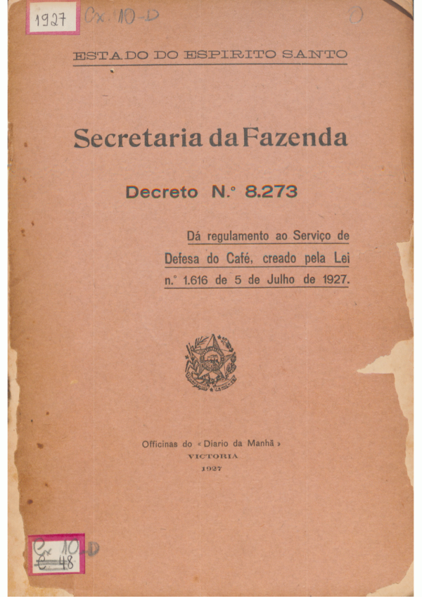 Decreto nº. 8273: dá regulamento ao Serviço de Defesa do Café, criado pela Lei nº. 1616 de 5 de julho de 1927
