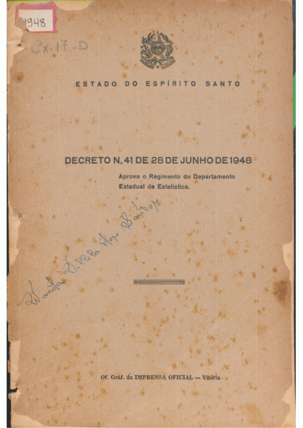 Decreto nº. 41 de 28 de junho de 1948: aprova o regimento do Departamento Estadual de Estatística