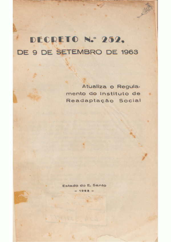 Decreto nº. 252, de 9 de setembro de 1963: atualiza o regulamento do Instituto de Readaptação Social