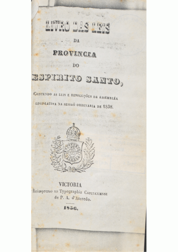 Livro das leis da Província do Espírito Santo contendo as leis e resoluções da Assembleia Legislativa na sessão ordinária de 1838