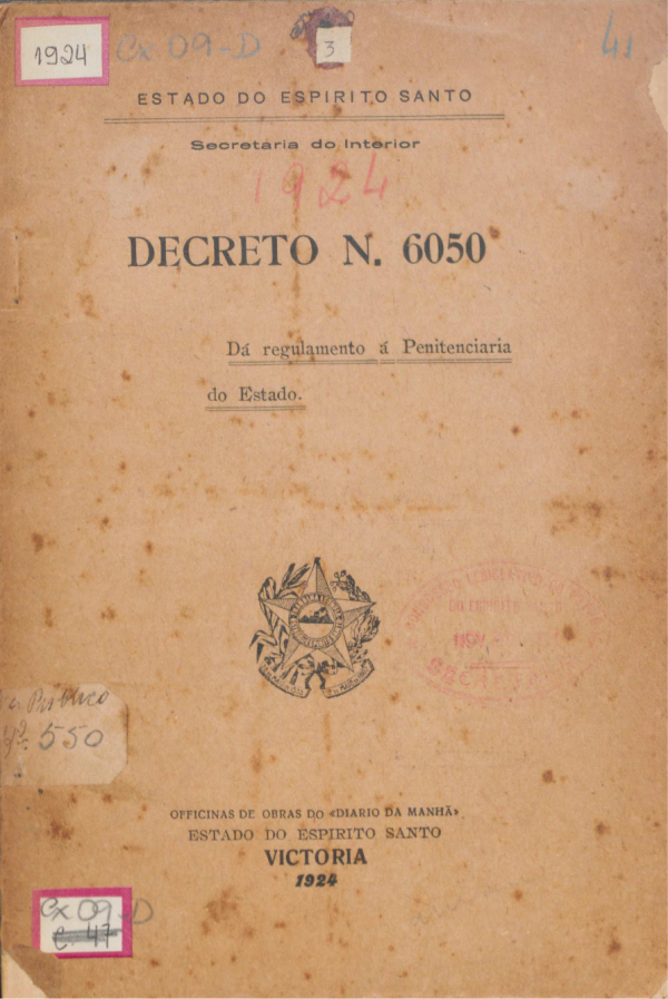 Decreto nº. 6050: dá regulamento a penitenciaria do Estado