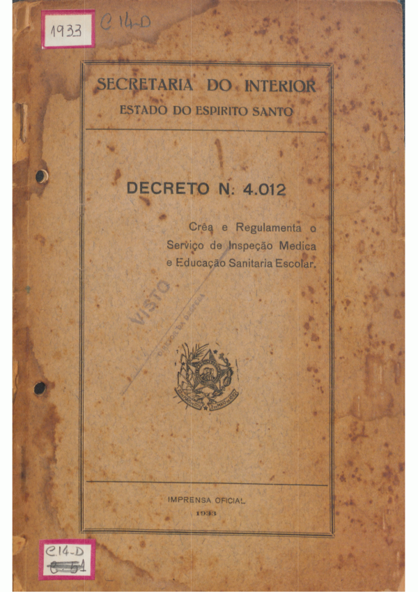 Decreto nº. 4012: cria e regulamenta o Serviço de Inspeção Médica e Educação Sanitária Escolar
