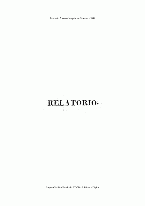 Relatório do presidente da Província do Espirito Santo, desembargador Antonio Joaquim de Siqueira na abertura da Assembleia Legislativa Provincial no dia 11 de março de 1849